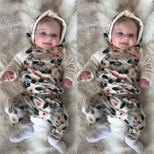 Good Price for 0-3Y Newborn Infant Kids Baby Girl Cotton Long Sleeve Hooded Floral Tops Long Pants Child Outfits C