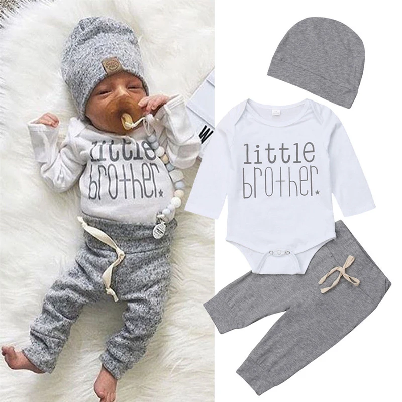 Special Chance for 2020 Little Brother Baby Boy Girl Warm Clothes Set Long Sleeve Letter Jumpsuit Bodysuit+Gray Warm P