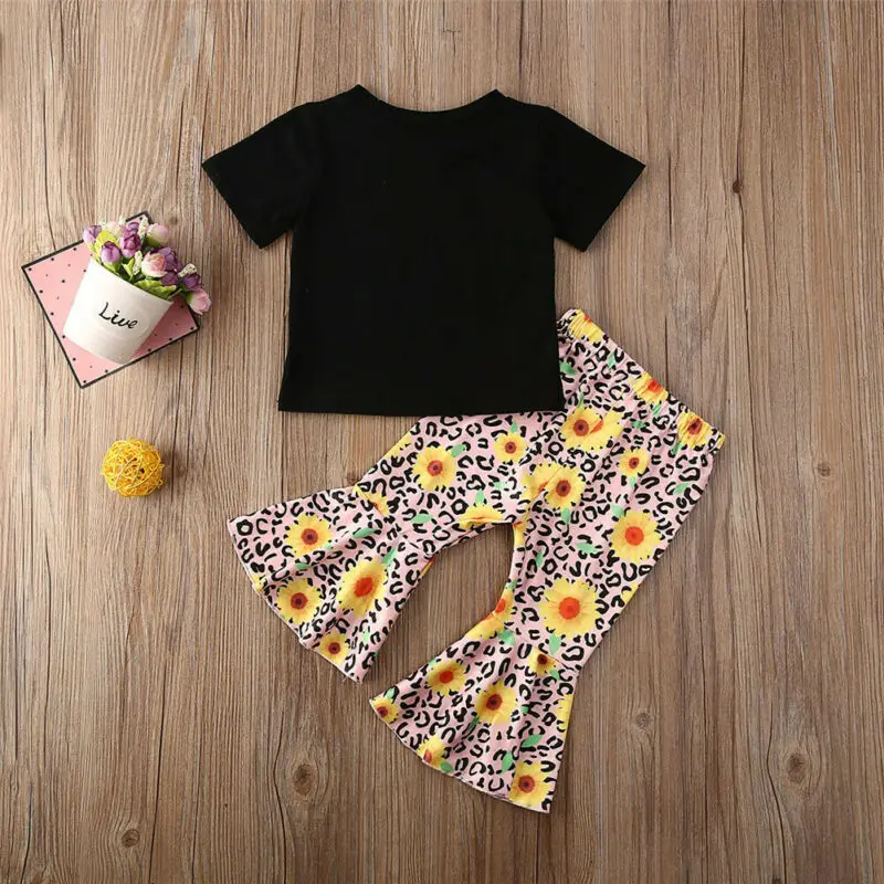 Good Offer for 2pcs Fashion Baby Girls Clothing Set Toddler Letter Floral Short Sleeve T-Shirt Tops+Pants 2Pcs Out
