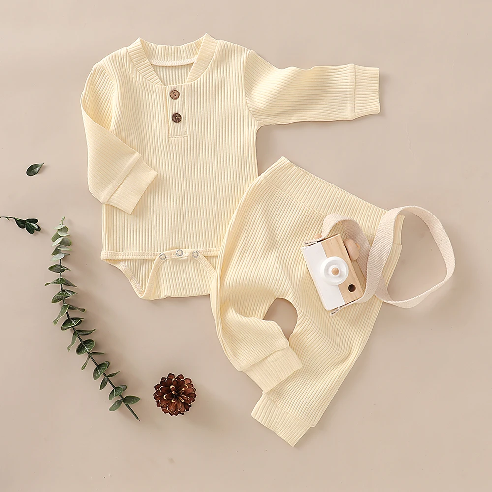 Limited Offer of 2Pcs/set Baby Boys Girls Solid Clothing Set Cotton Romper+Pants Suits Long Sleeve Newborn Infant T-