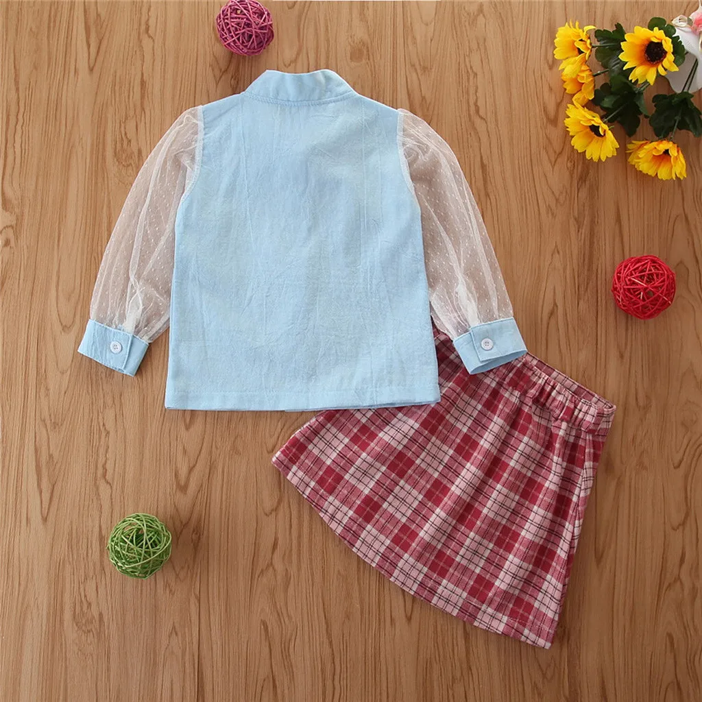 Special Chance for Girls Clothes New Fashion Baby Girls Fashion Bow-Tie T-shirt Tops+Plaid Skirt Clothes Outfits Set T