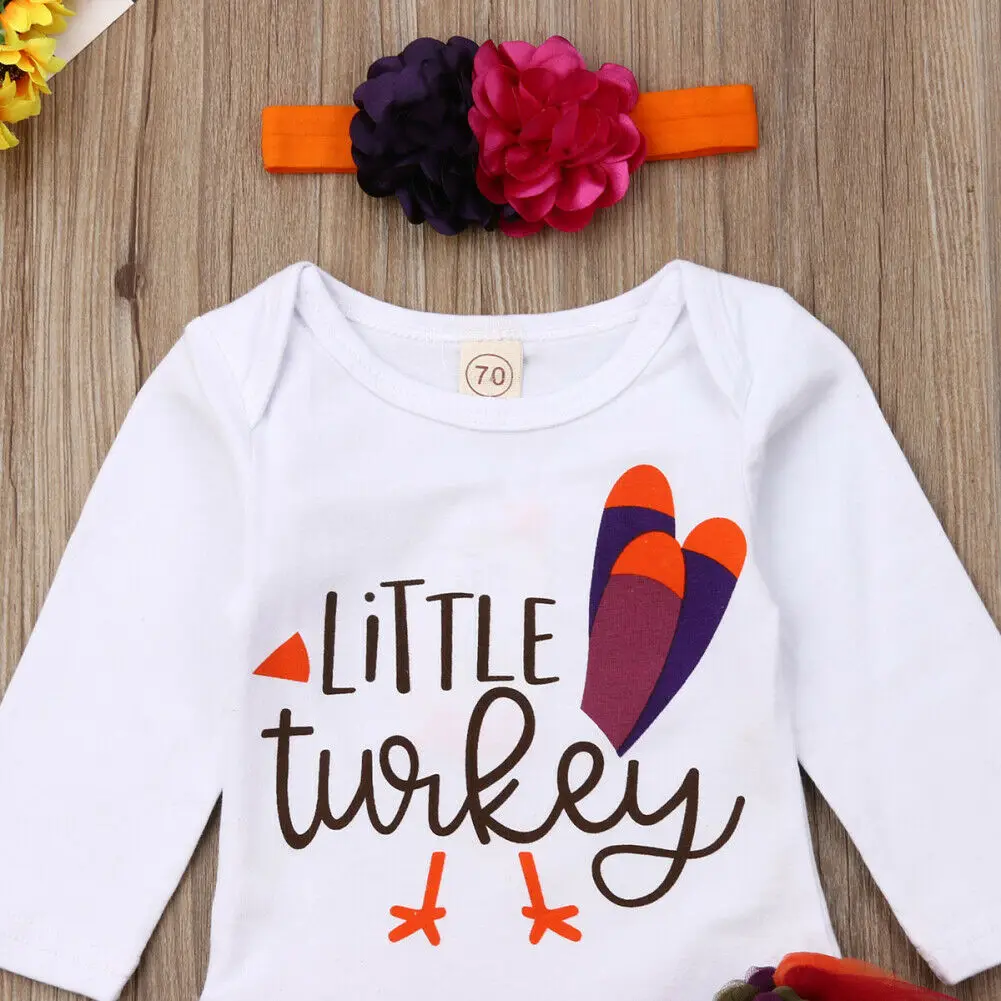 Special Offer of Newborn Baby Toddler Infant Thanksgiving Day Outfits Long-Sleeved Little Turkey Romper + Tutu Skirt